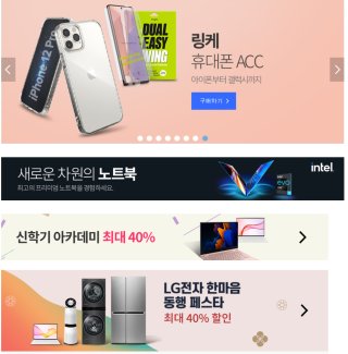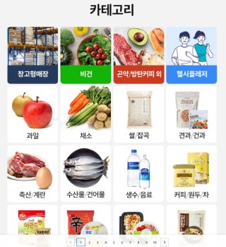 - 원하는 카테고리로 이동 생필품 식품 가전 패션 등 자주 찾는 영역으로 들어간다.